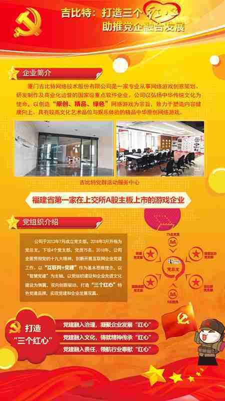 未来公司将全面学习贯彻习近平新时代中国特色社会主义思想和党的十九大精神,,,持续强化“互联网+党建”的思维理念,,以“智慧党建”为主轴,,,,以党组织建设和企业先进文化建设为侧翼,,,,双向创新驱动,,,,引领有信仰、、、、有情怀、、、、有价值的新时代游戏研发运营,,,,在不断发展壮大的同时,,,成为行业的“红色标杆”,,,,实现党建和企业发展双赢。。。