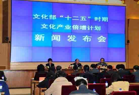 2月28日下午,,,,文化部在京召开新闻发布会,,正式向社会发布《文化部“十二五”时期文化产业倍增计划》,,,,提出了 “十二五”期间文化部门管理的文化产业增加值年平均现价增长速度高于20%,,2015年比2010年至少翻一番,,,实现倍增的奋斗目标。。。。